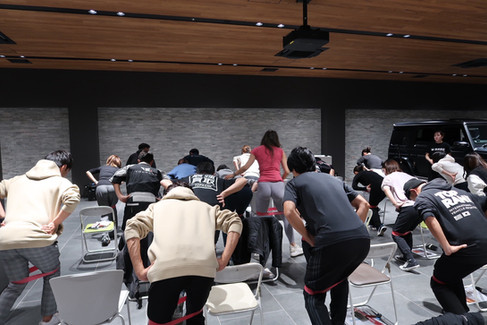 今年7月にオープンしたショールームで最新モデルからネオクラシック、ハイパフォーマンスカーなどに囲まれた中で、多くの従業員の方々にご参加いただき「睡眠と食事で変わる毎日がラクになる健康習慣」をテーマにした座学とミニバンドを使用したエクササイズで普段の運動不足を解消していただきました!